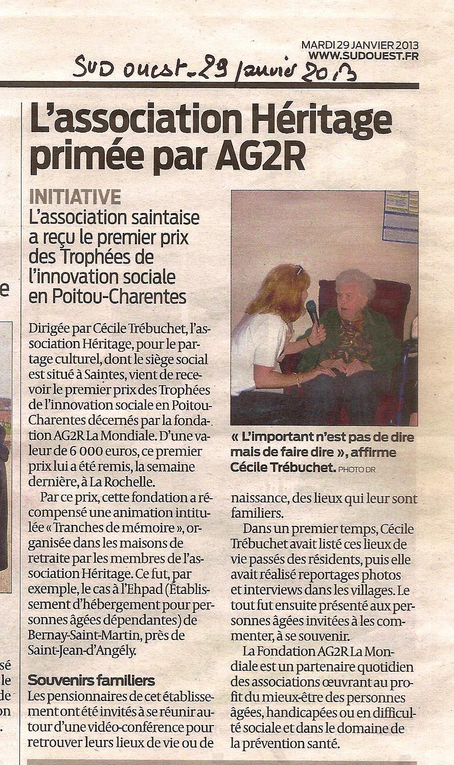 Héritage a été primée plusieurs fois pour la qualité de ses activités culturelles et ses missions intergnérationnelles.